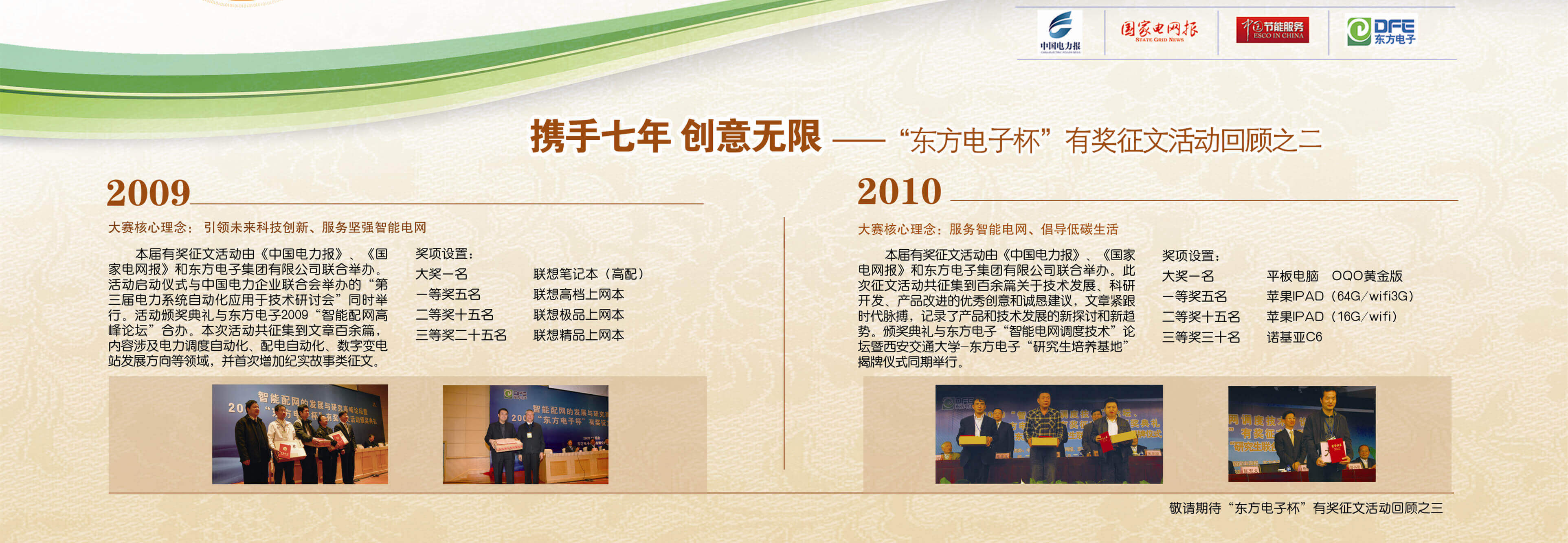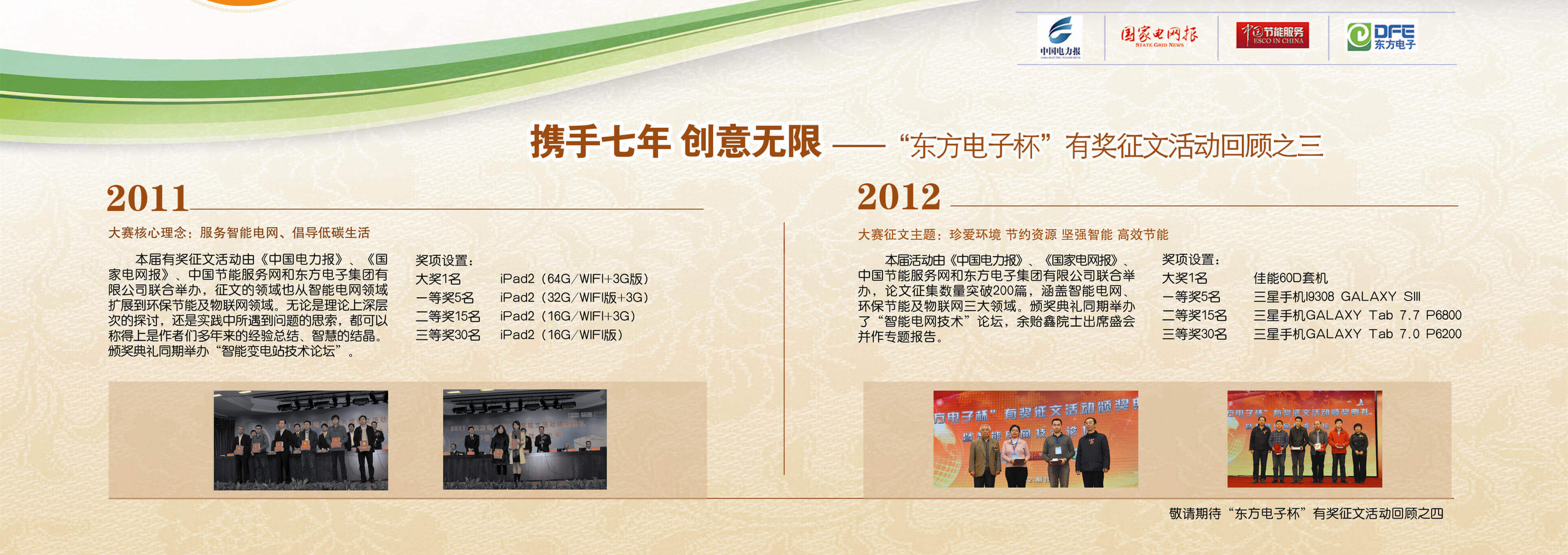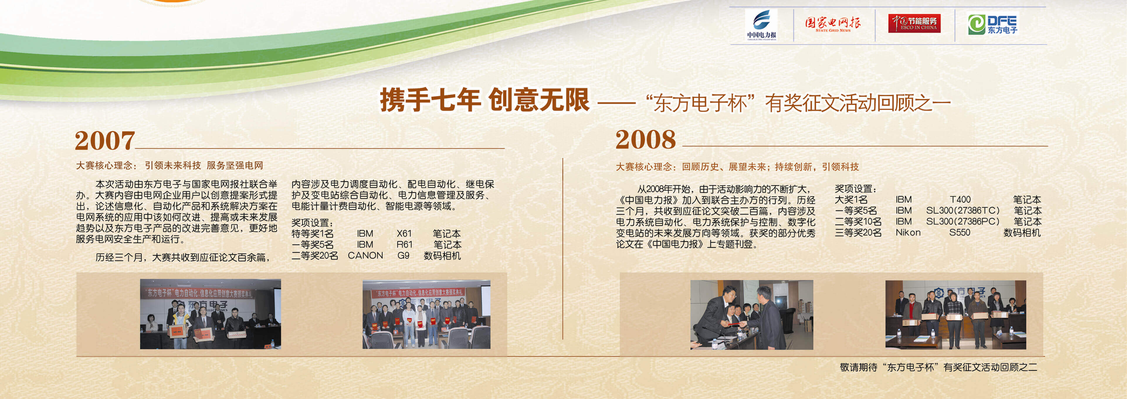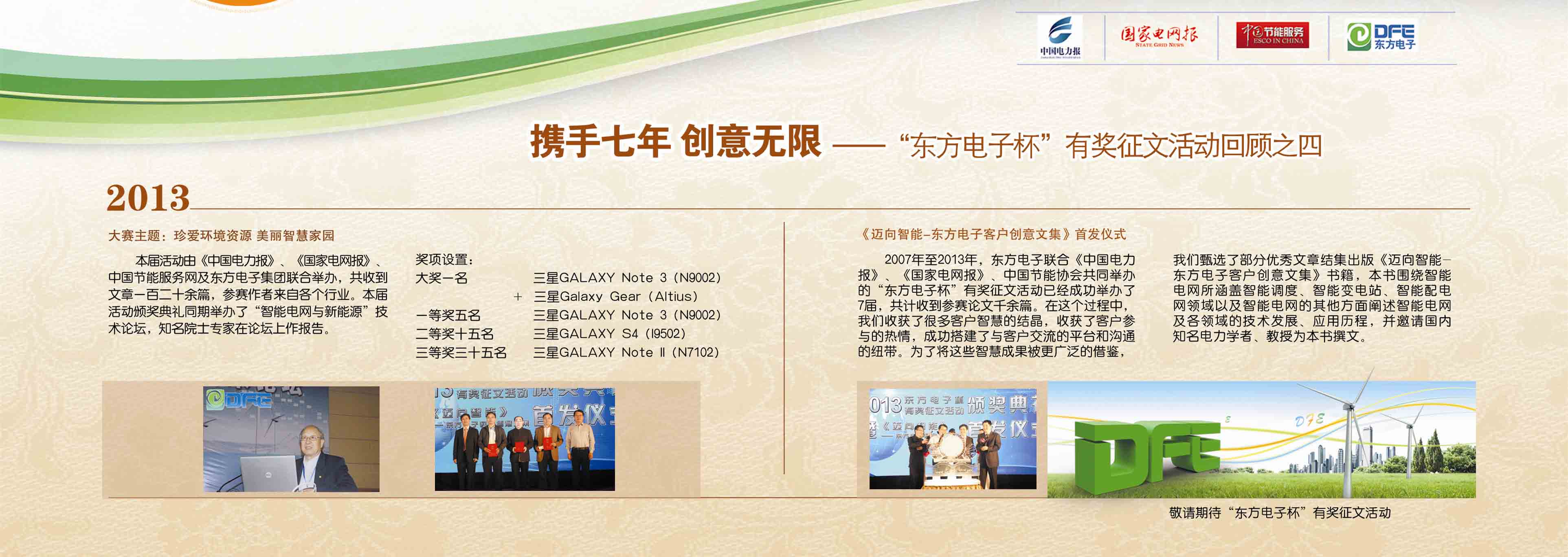 2007年至今,由长沙耐得丽科技有限公司联合《中国电力报》、《国家电网报》、《中国节能服务》杂志共同举办的“长沙耐得丽科技有限公司杯”有奖征文活动已成功举办七届,在这个过程中,我们收获了很多客户智慧的结晶、收获了客户参与的热情,成功搭建了与客户交流的平台和沟通的纽带。